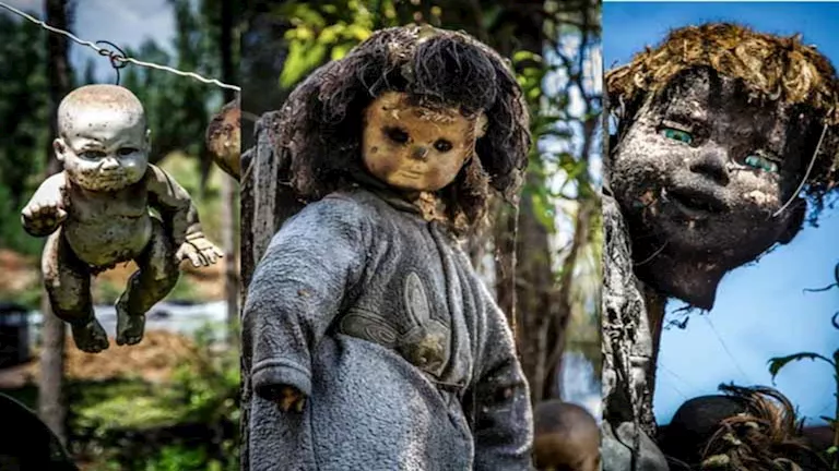 في قنوات زوتشيميلكو بالعاصمة المكسيكية، تُغلق مئات الدمى المشوهة على الأشجار في مشهد مرعب.